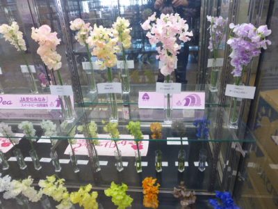 「JA愛知みなみスイートピー」R4.1.5(水)~ JA愛知みなみのスイートピー26品種をショーケースにて展示中です。1月から4月シーズンを通して高品質なスイートピーを出荷していただいております。 問い合わせは、担当:水戸 敏雅 まで ・展示の様子
